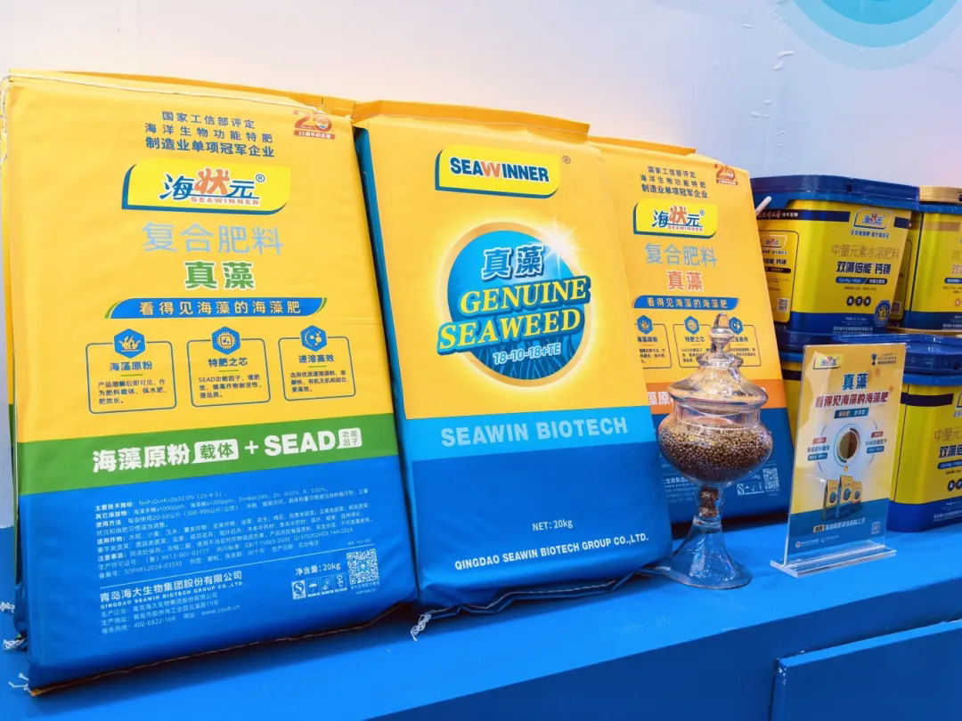 核心原料褐藻海带、绿藻浒苔、鳕鱼皮、牡蛎壳在展厅主位展示,这些主推产品和核心原料不仅成为行业的关注点,更成为客户、用户种植致胜的法宝。